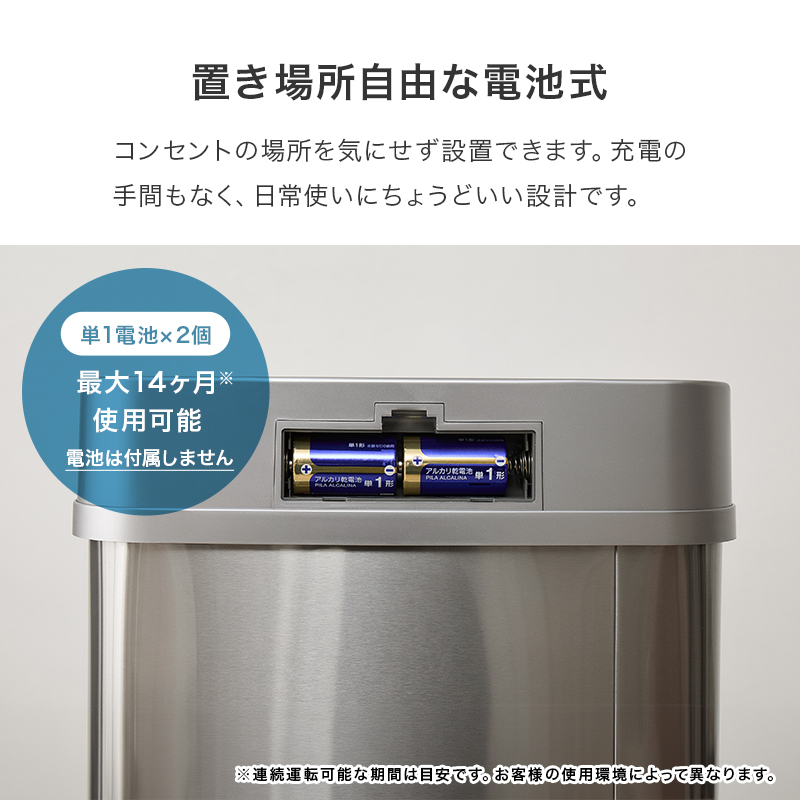 ■置き場所自由な電池式