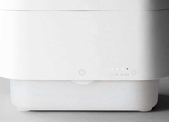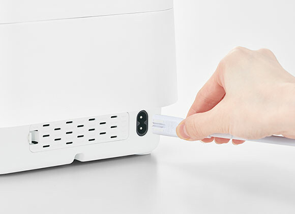 本体には無機抗菌剤を練り込んだ抗菌樹脂を採用。無加工製品との比較でも細菌の増殖割合が100分の1以下の抗菌効果を実現しました。ヌメリや赤カビを抑制し、清潔にお使いいただけます。UV除菌ライトの紫外線照射によって本体内部の水を除菌するUV除菌モードにより清潔なミストを噴霧させることが可能です。