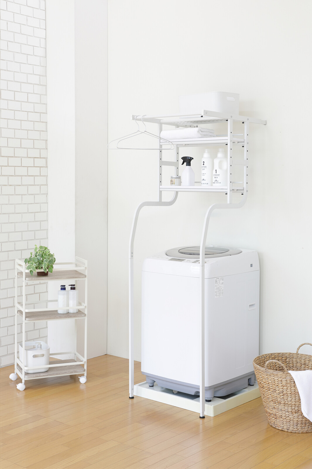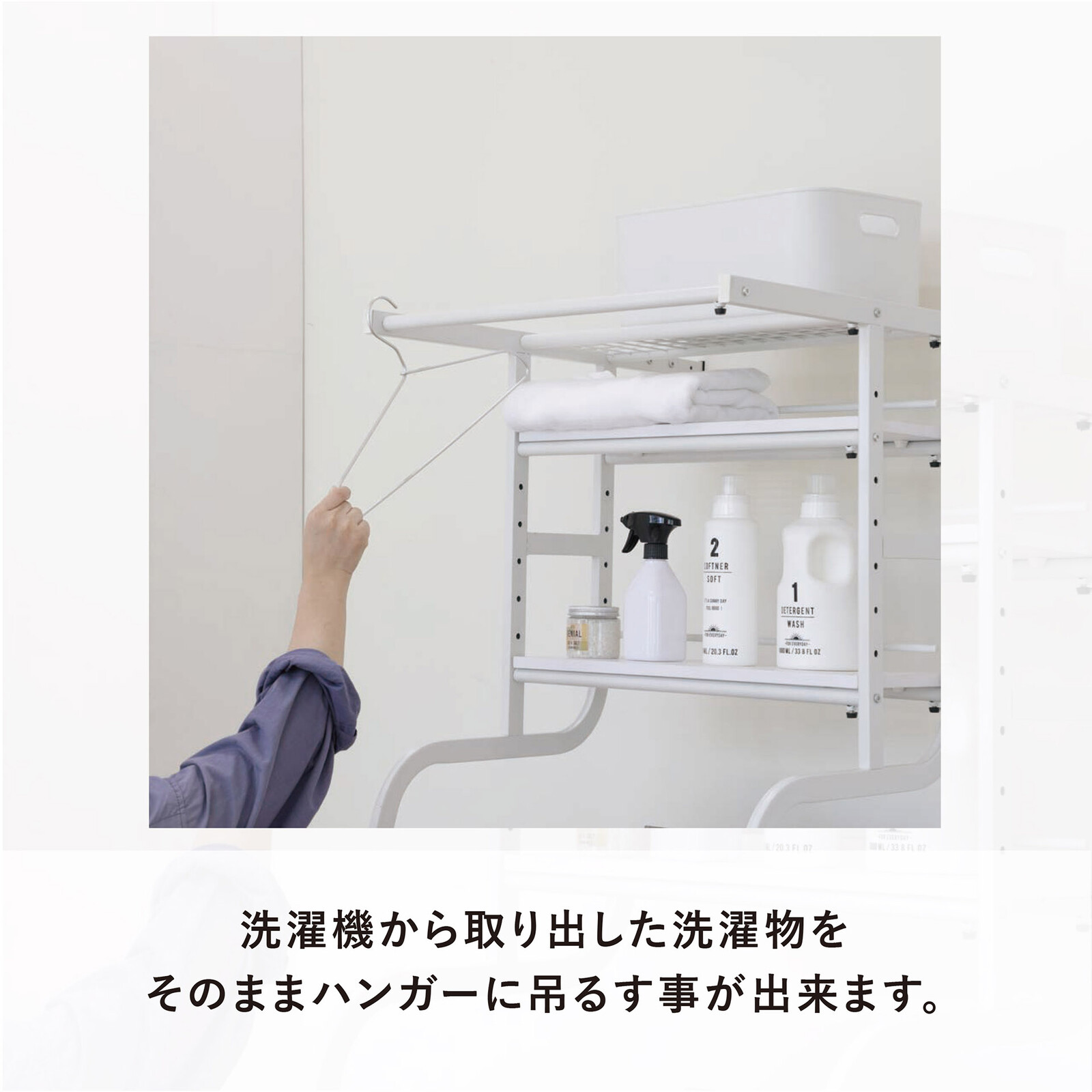 ■洗剤などを収納したり洗濯物をハンガーにかけて置くことも可能です