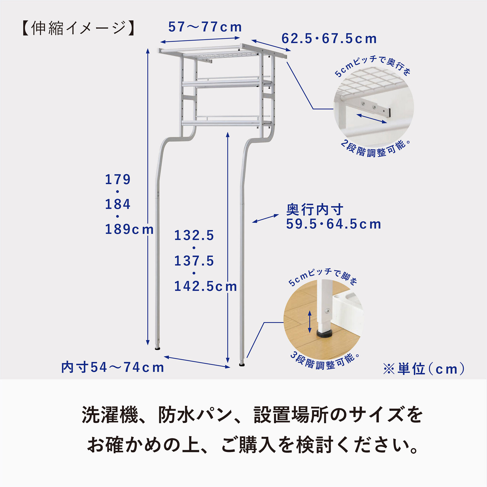 製品サイズ:W570〜770×D625・675×H1790・1840・1890mm