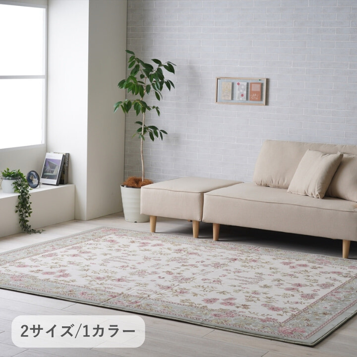 【200cm×250cm】ジャガード織り ラグ くすみグリーン系 長方形