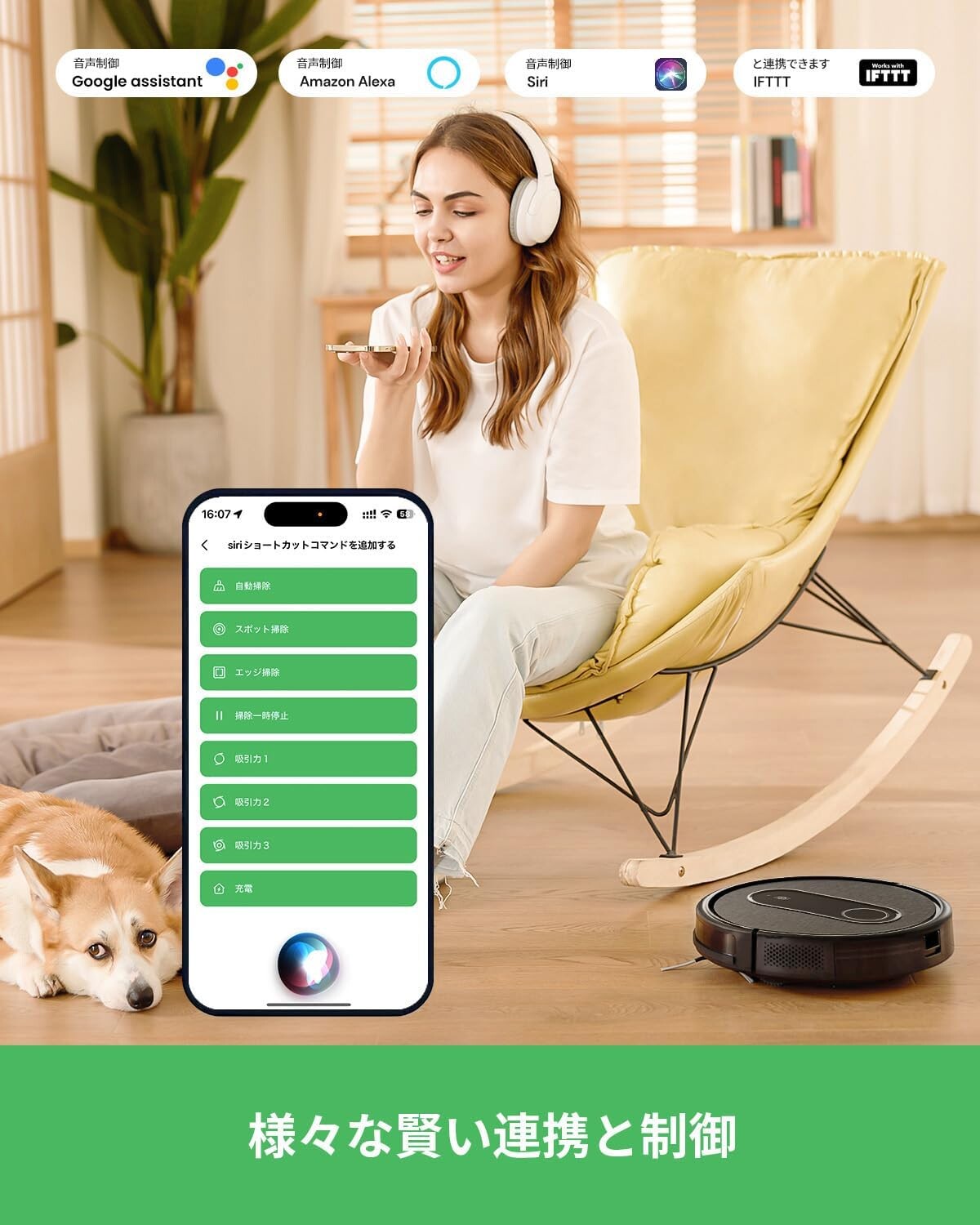 T7 ロボット掃除機を起動するには、以下の方法を持っています。【リモコン制御】T7 ロボットは専用リモコンが付属し、リモコンですべての機能を実現できます。【APP遠隔操作】Bluetooth対応可能で、アプリに接続し、ロボット掃除機の予約清掃や清掃モードを設定できます。(2.4GHzのWIFIのみ対応できます)【Alexa音声制御】Alexa ・アシスタント対応なので、電源オン&オフを簡単に操作でき、時間を効率的に節約できます。【Siri音声対応】アプリ内でSiriショートカットコマンドを追加すると、Siri音声でT7を操作できるようになります。