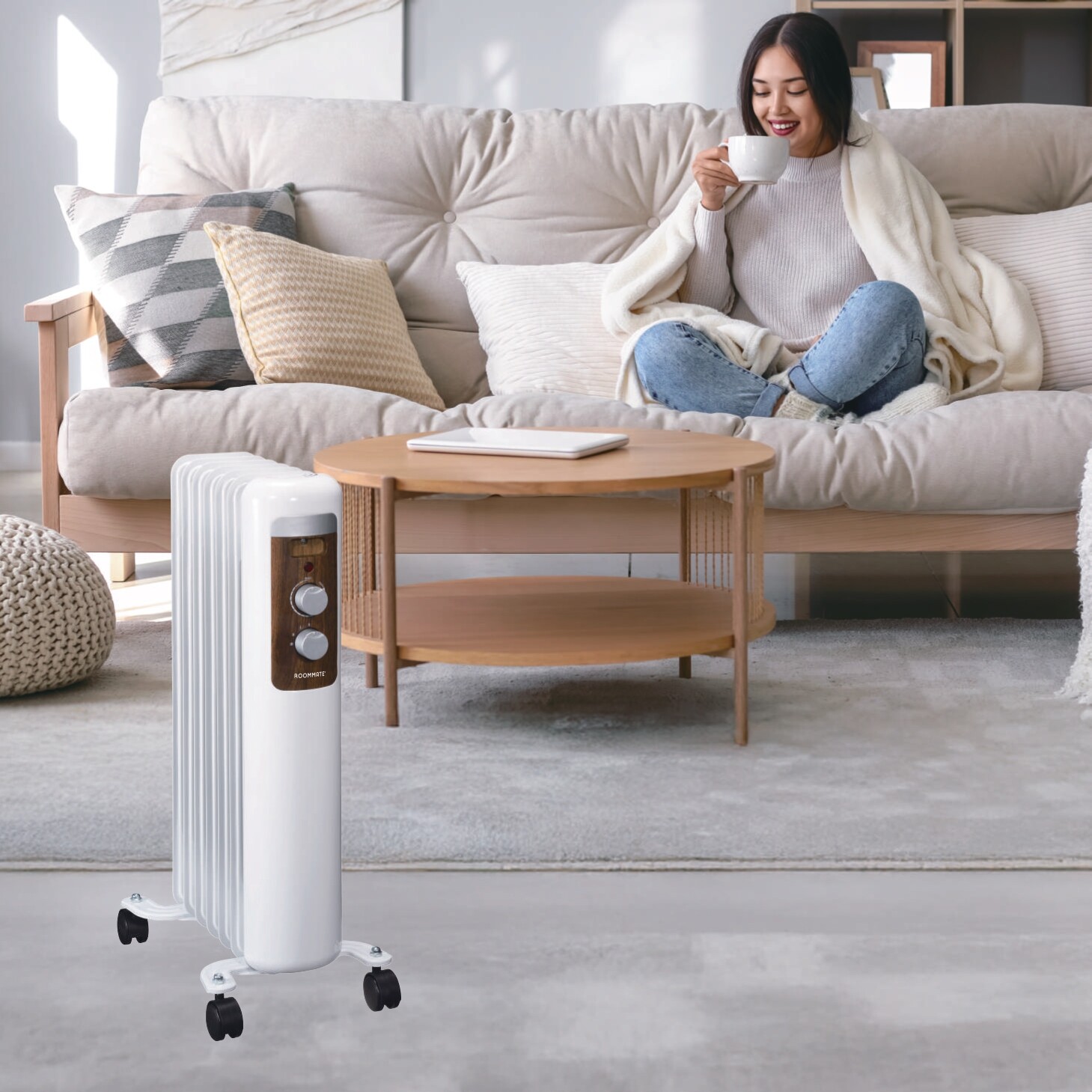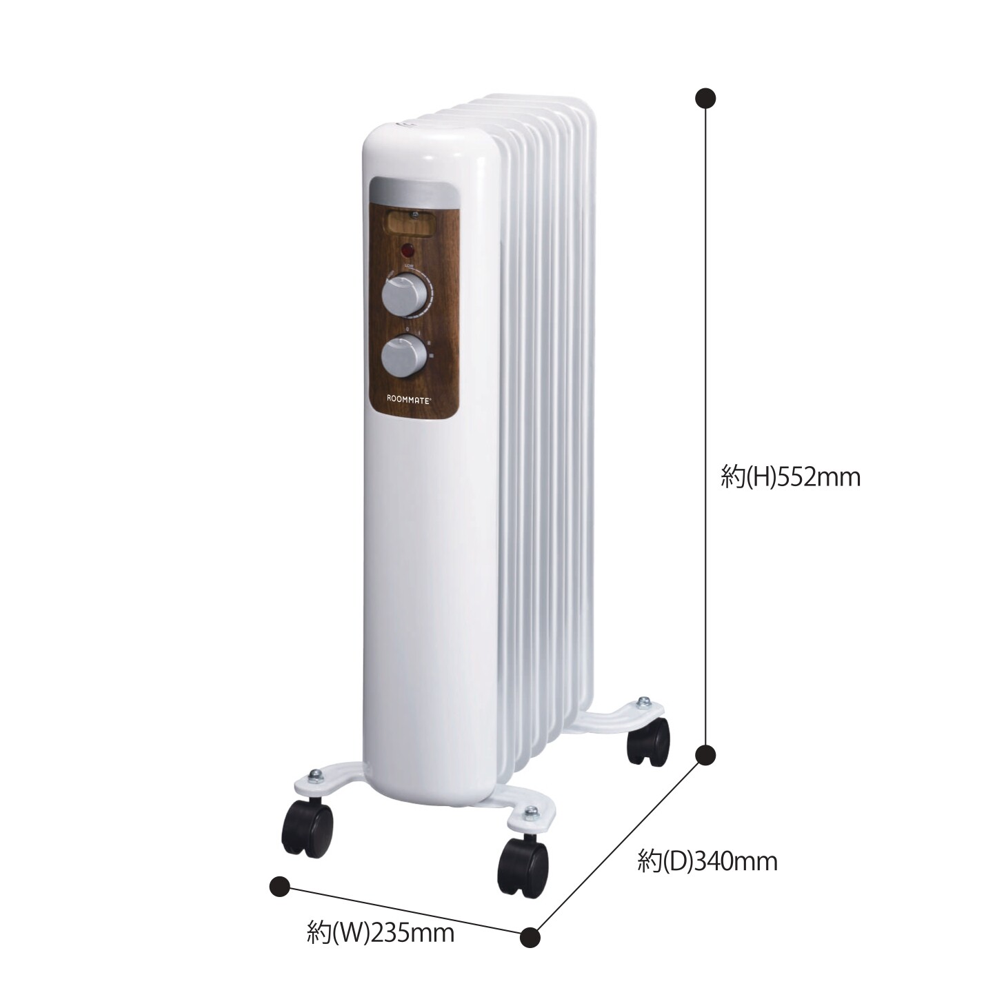 【和室6畳洋室8畳】最大1200W 幅34cm 7枚フィンオイルヒーター ROOMMATE RM-241H ホワイト