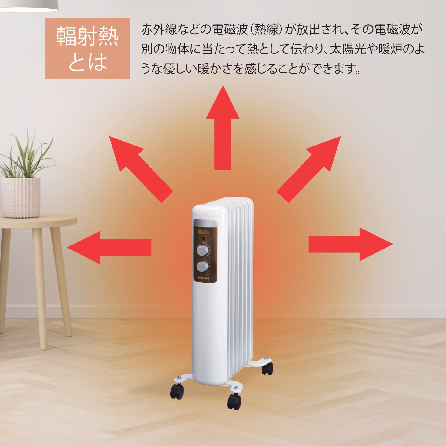 紫外線などの電磁波(熱線)が放出され、その電波波が別の物体に当たって熱として伝わり、太陽光や暖炉のように優しい暖かさを感じることができます。