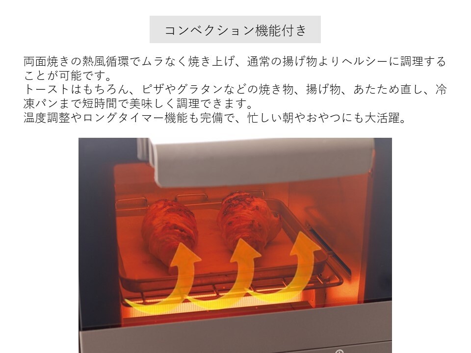 小型コンベクションオーブントースターは、超小型トースターながらコンベクション機能がついています。コンベクションオーブントースター利点は、食材を均等に加熱できること。