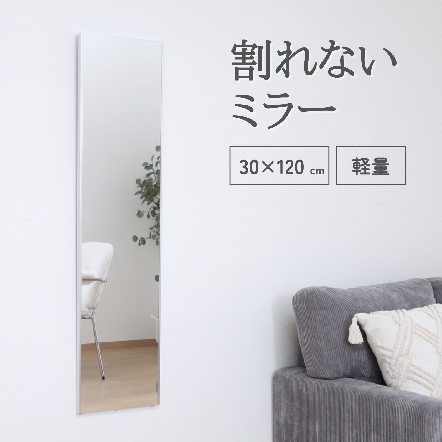 【軽量】フレームが目立たないスッキリデザイン 割れないミラー 30cm×120cm